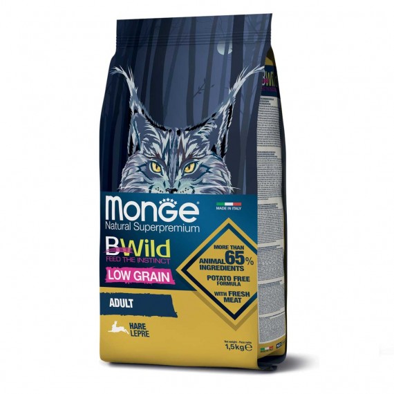 Monge BWild Low Grain Gatto Adulto Lepre è un alimento completo e bilanciato per gatti adulti. L’elevato tenore di proteine della carne di lepre garantisce una dieta...